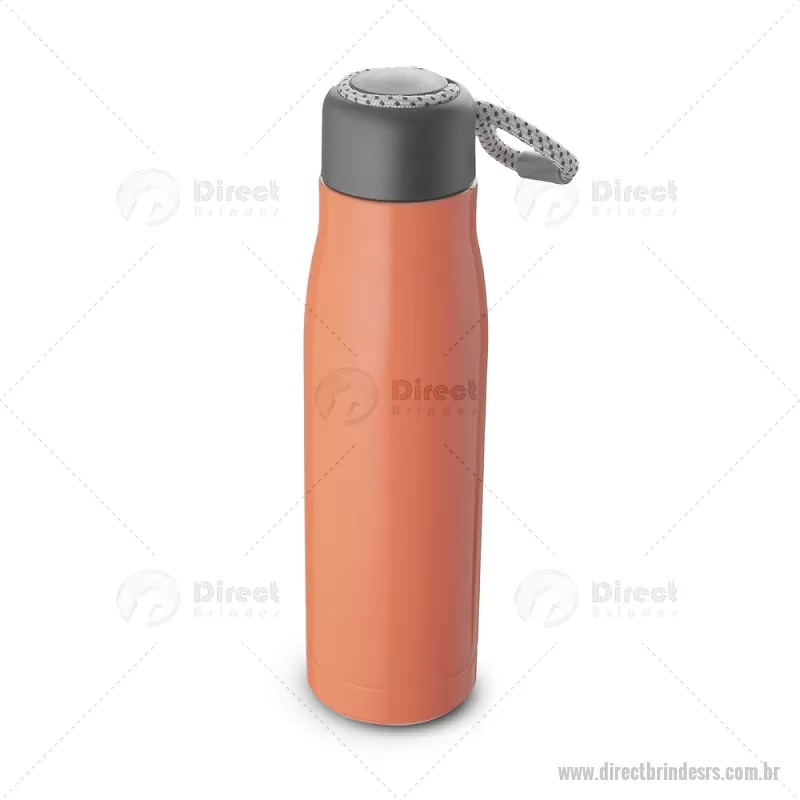 Garrafa térmica em aço inox 550ml brilhoso com parede dupla isolada a vácuo, com alça em corda para facilitar o transporte. Tampa plástica rosqueável e anel de silicone para vedação. Conserva líquidos : ??8 horas ??12 horas Dimensão do produto: 25xø7cm (AxøD) Peso do produto: 0,252kg - - DRTRSGAT101