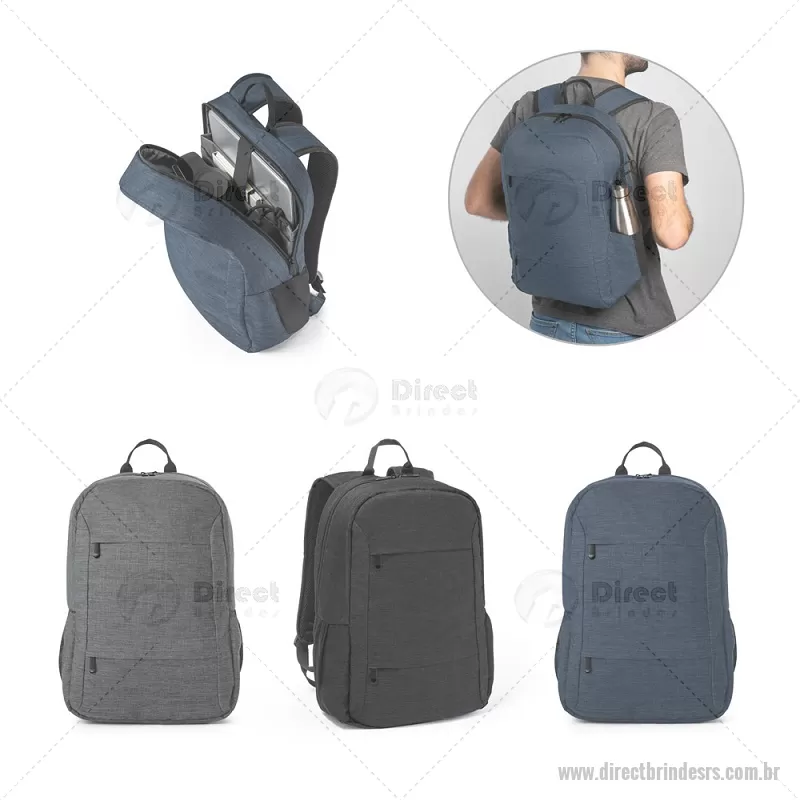Mochila para notebook portátil em poliéster reciclado 300D e forro em poliéster reciclado. Compartimento principal almofadado, com divisória principal para portátil até 15.6" e tablet até 10.1". Mochila com 2 bolsos frontais com zíper e 2 bolsos laterais com detalhe em tela mesh. Parte posterior e alças almofadadas, ajustáveis para os ombros. A parte posterior e alças almofadadas incorporam uma alça para trolley em caso de necessidade. Design idealizado para assegurar uma excelente arrumação nas suas viagens de trabalho ou lazer.