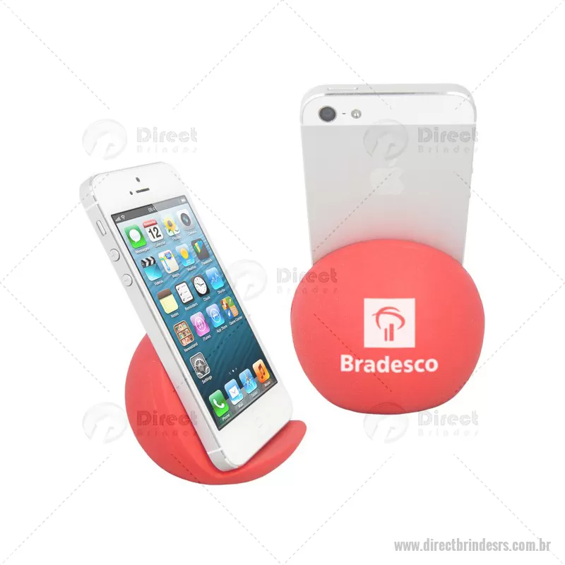 Porta celular / Apoio para smartphone de mesa Personalizado. Feito em vinil oca e disponível em várias cores. Material: Vinil - Especificação: Vinil (Policloreto de vinil) Disponível nas cores: vermelho, azul, azul escuro, azul claro, verde, verde escuro, verde claro, amarelo, laranja, preto, branco. Informação: Pantones específicos a partir de 1000 peças. Tipo de gravação: Tampografia Area de gravação: 40mm Ø Medida Produto: 65mm A x 75mm L x 70mm Peso: 45g Quantidade Mínima: 100 un - - DRTRSTEC065