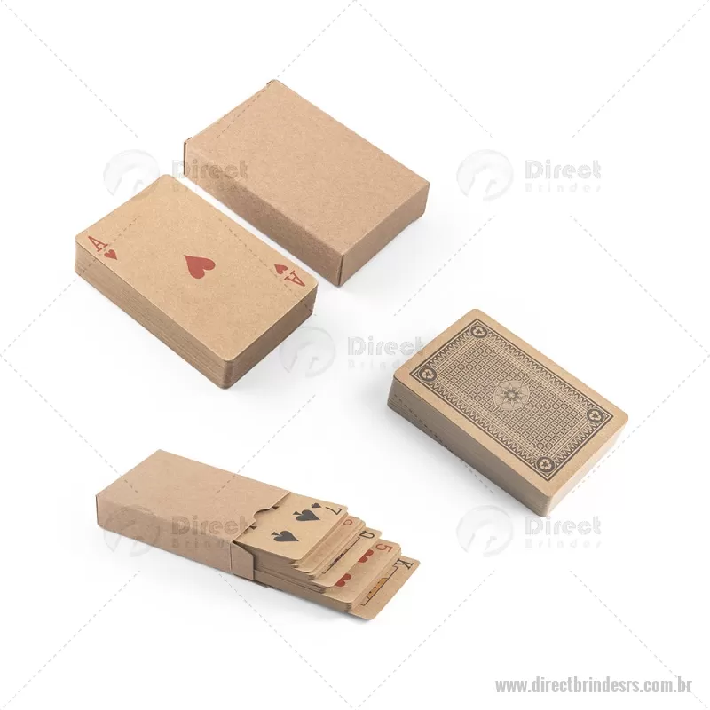 Baralho de 54 cartas clássicas em papel kraft Baralho com 54 cartas clássicas em papel kraft, proveniente de gestão florestal sustentável, ideal para compartilhar bons momentos com amigos e família. Fornecidas em caixa presente de papel kraft reciclado. A cor e o resultado da impressão nos materiais naturais pode variar entre produtos. medidas: 60 x 90 x 20 mm Peso do Produto (g.): 57 - - DRTRSJOG011