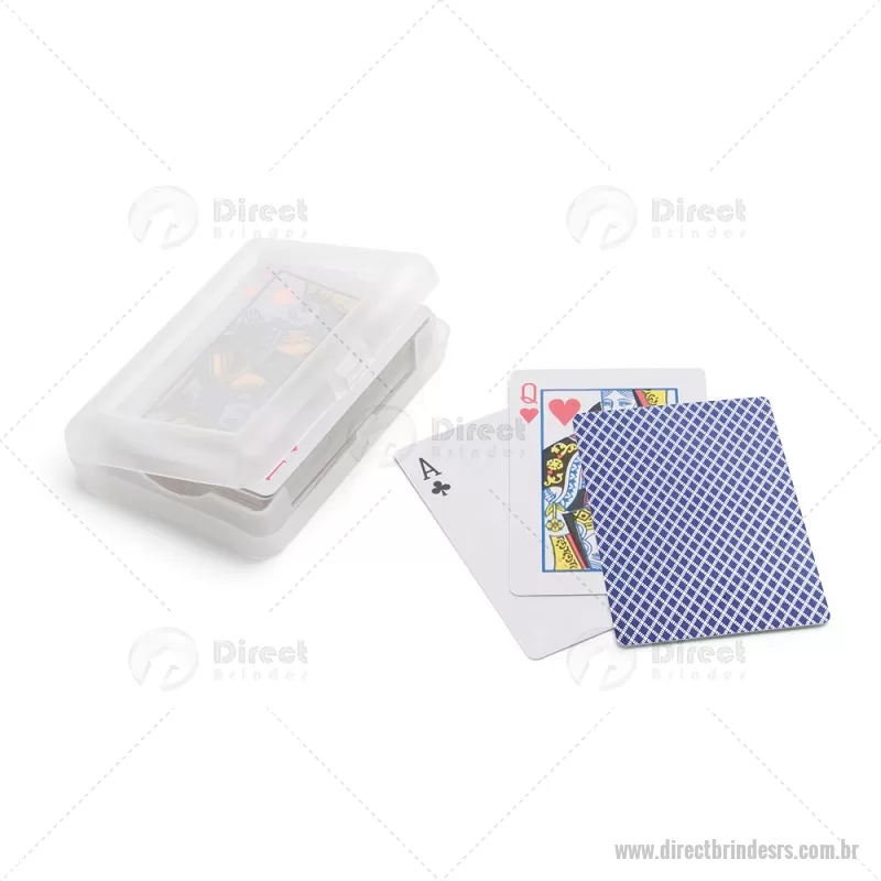 Baralho de 54 cartas em papel plastificado. Fornecido numa caixa rígida / estojo em PP. Medidas: 100 x 70 x 20 mm Peso do Produto (g.): 94 - - DRTRSJOG010
