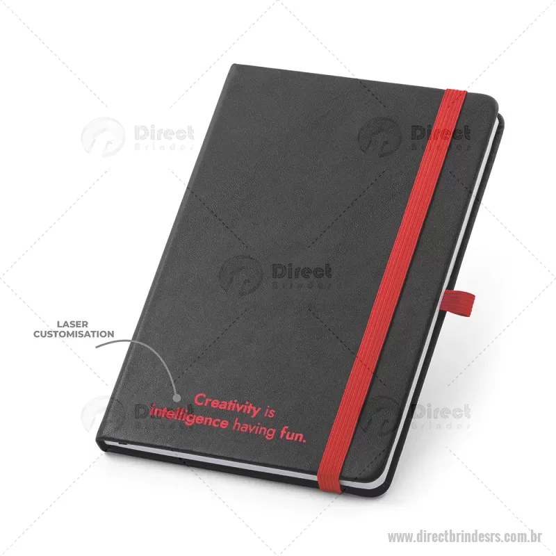 Bloco / Caderno A5 com capa dura em PU com 160 páginas pautadas. Caderno A5 de capa dura em PU com substrato colorido permitindo a gravação a laser da cor do elástico. Contém 160 páginas pautadas, elástico, fita separadora, suporte para esferográfica (não inclusa) e bolso em papel na parte traseira da capa. Medidas do produto: 14,0 x 21,0 cm - - DRTRSBLC181