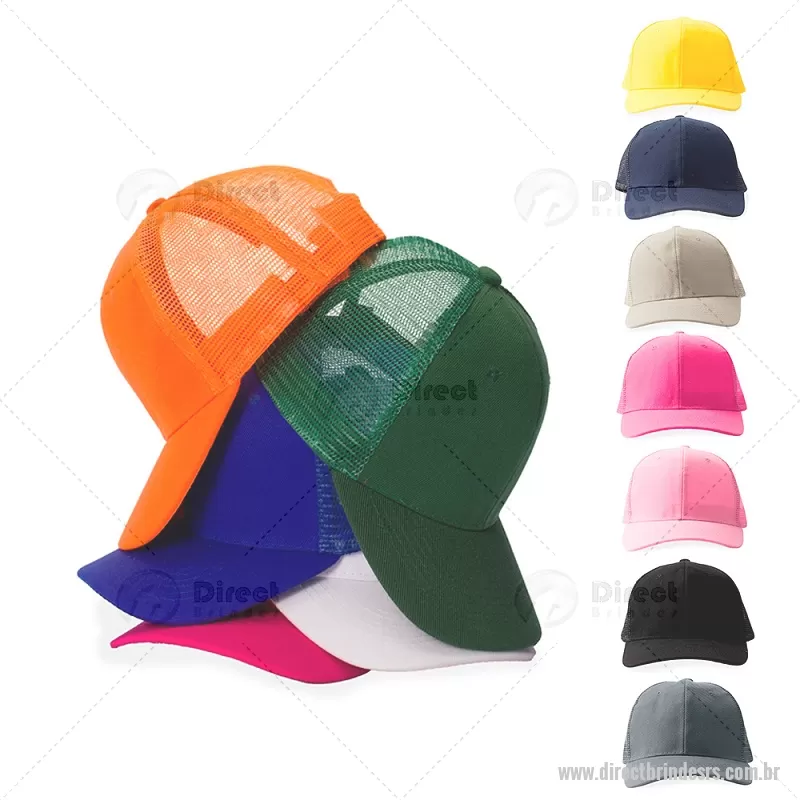 Boné de aba curva em poliéster com laterais em tela de nylon respirável. Possui fecho plástico ajustável na parte traseira, garantindo conforto e praticidade no uso diário. - - DRTRSBON011