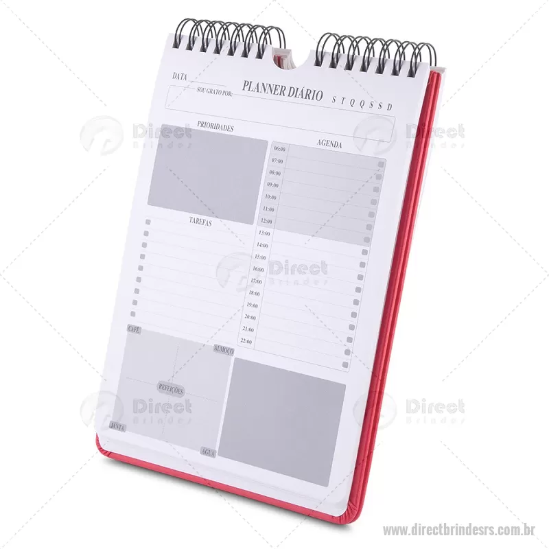 Caderno Planner com capa em PU 2 mm, 90 folhas 95 g/m², páginas para preenchimento diário, incluindo seções de prioridades, agenda do dia, tarefas e horários para refeições. Peso do Produto: 0,382kg Dimensão do Produto: 22,5x15,7cm - - DRTRSCAD036