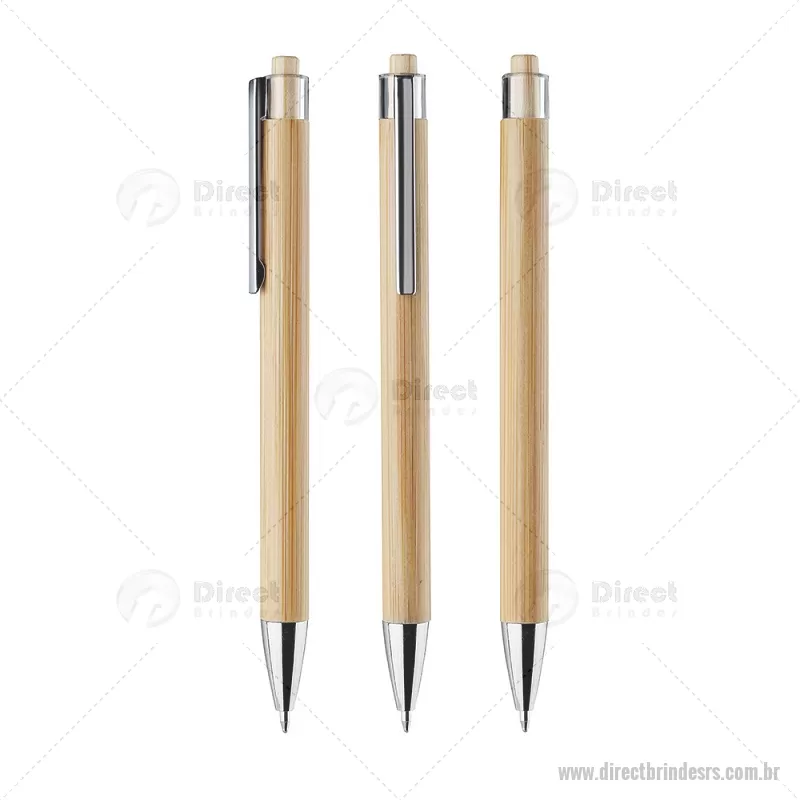 Caneta com corpo em bambu, acionador em bambu com detalhe plástico, ponteira e clipe cromado. Dimensão Produto: 14xø1cm Peso do Produto: 0,007kg - - DRTRSCPECO072