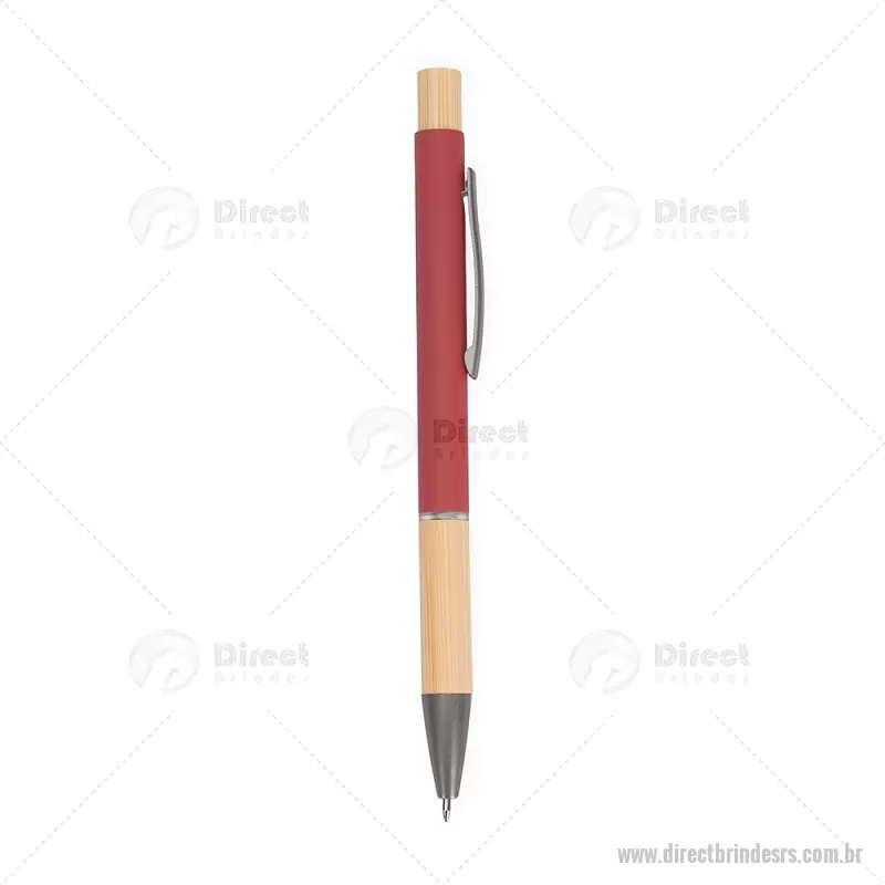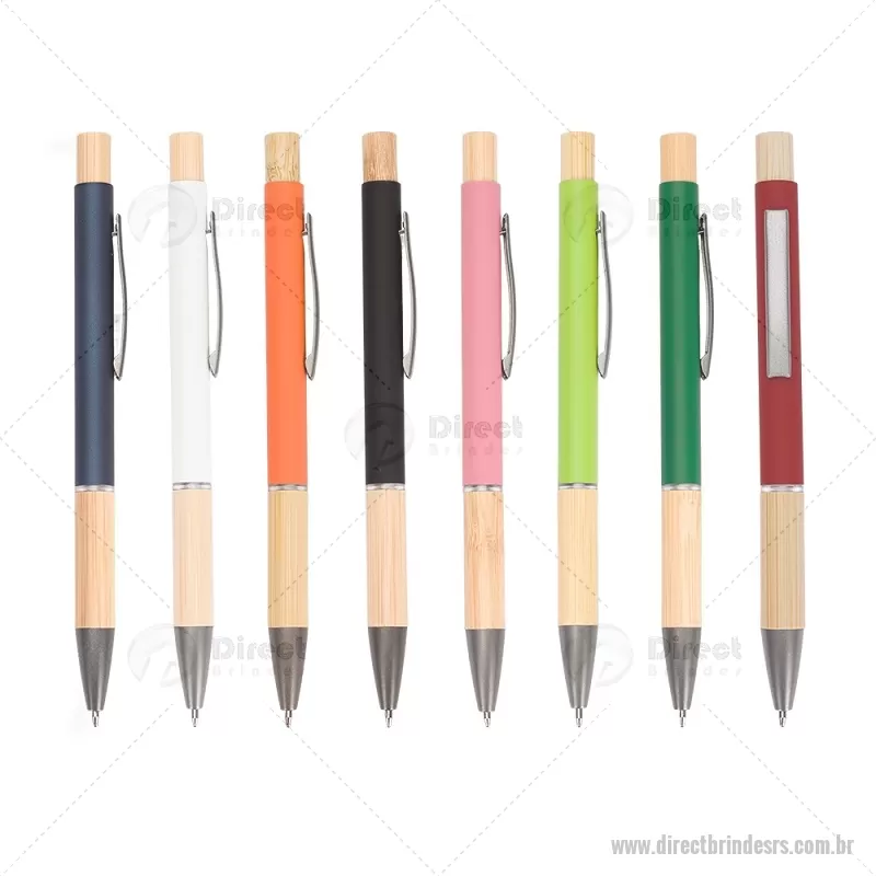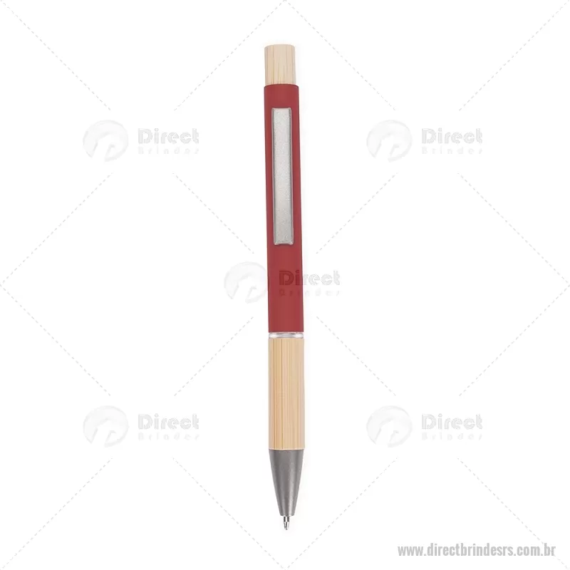 Caneta esferográfica azul 1,0 mm com corpo metálico, detalhes em bambu e acionamento por clique. Leve e confortável, proporciona escrita precisa no dia a dia. - - DRTRSCMT296