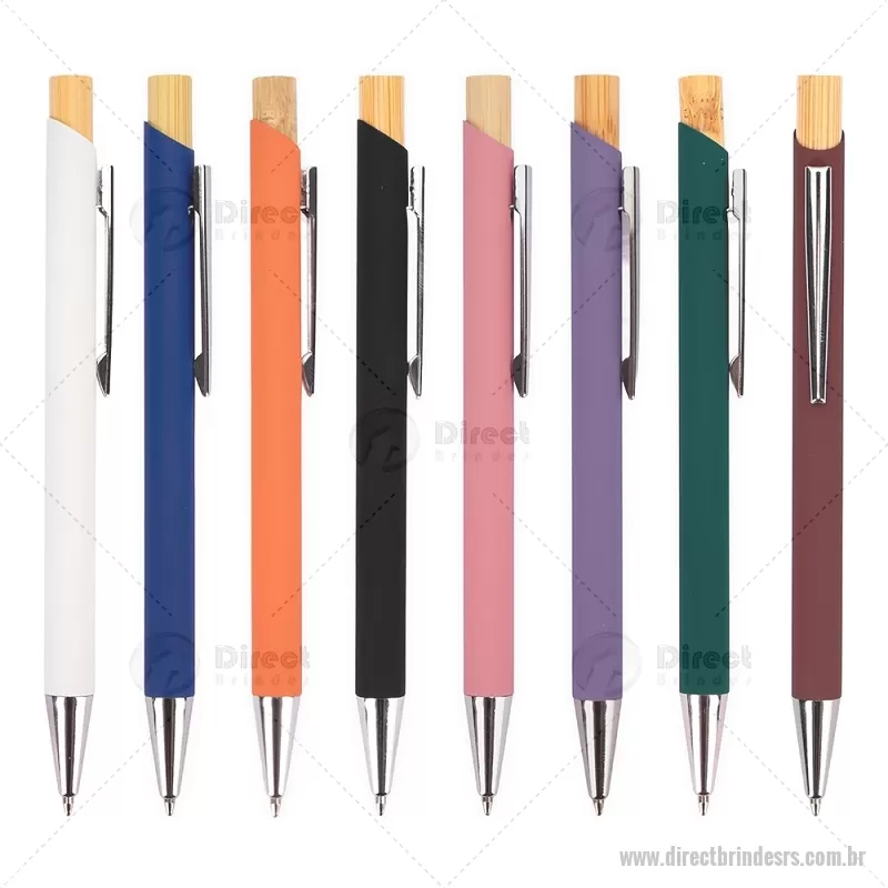 Caneta esferográfica azul 1,0 mm com corpo metálico e acionamento por clique em bambu. Oferece escrita leve, confortável e precisa para o uso diário. - - DRTRSCMT297