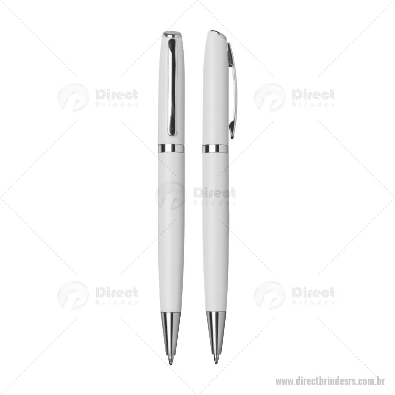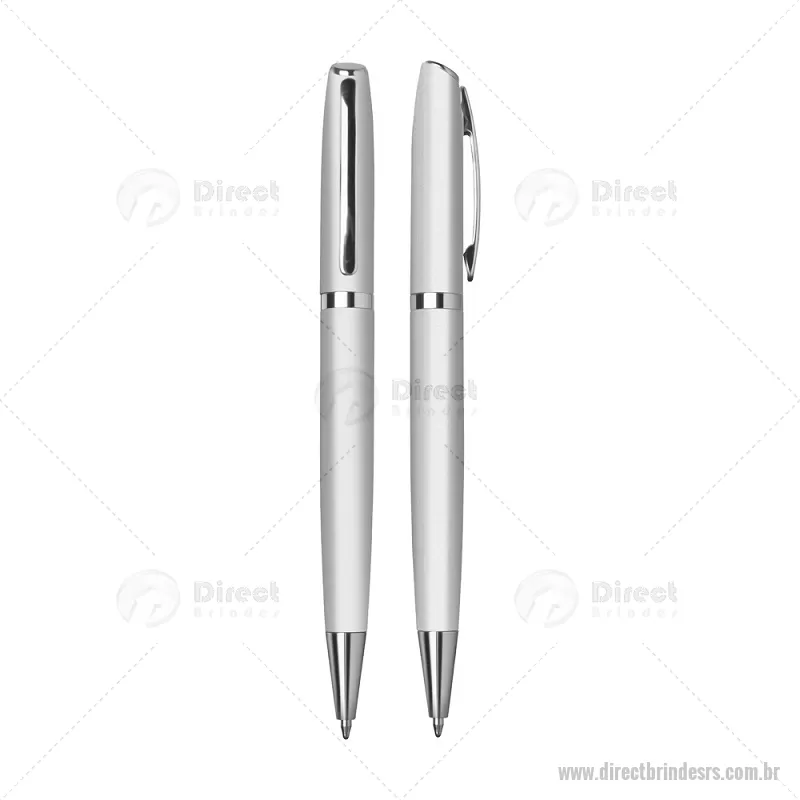 Caneta de Alumínio esferográfica. Acionamento retrátil por giro com detalhe prateado e escrita macia azul. Consultar cores disponíveis. Gravação a laser. - - DRTRSCMT086