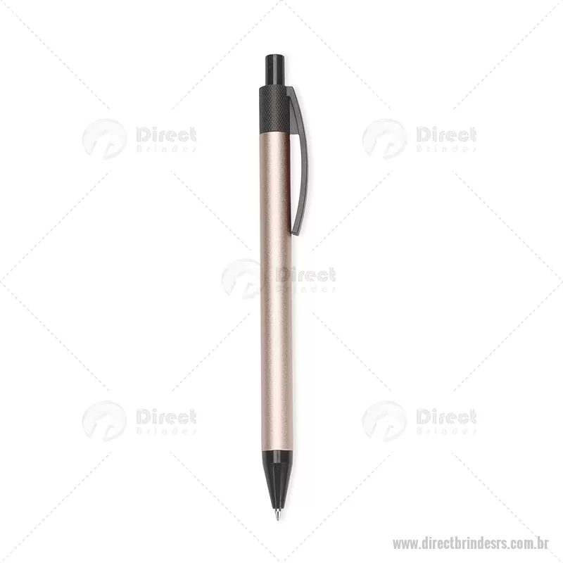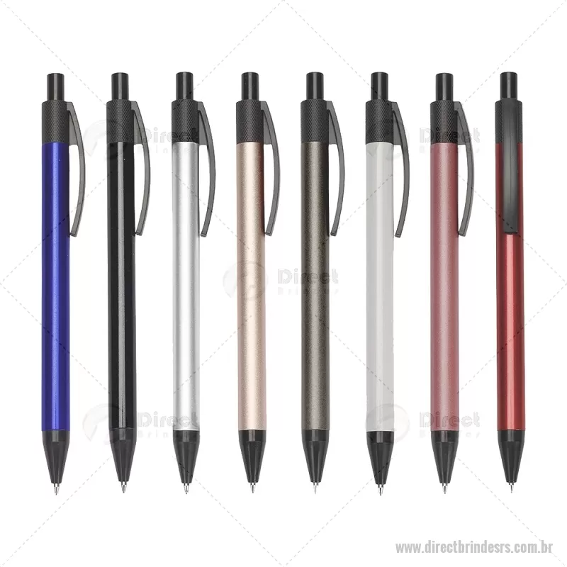 Caneta com corpo em metal, ponteira e clip em plástico, equipada com acionamento por clique. Possui carga esferográfica azul de 1,0 mm, garantindo escrita suave, leve e precisa para o uso diário. - - DRTRSCMT301