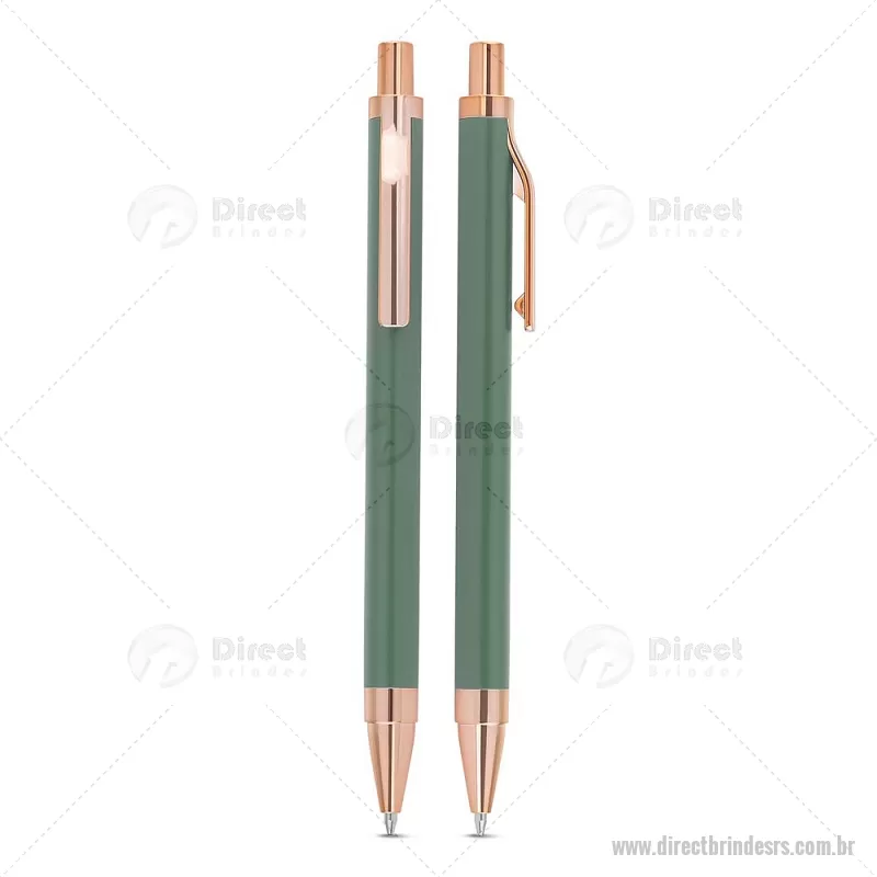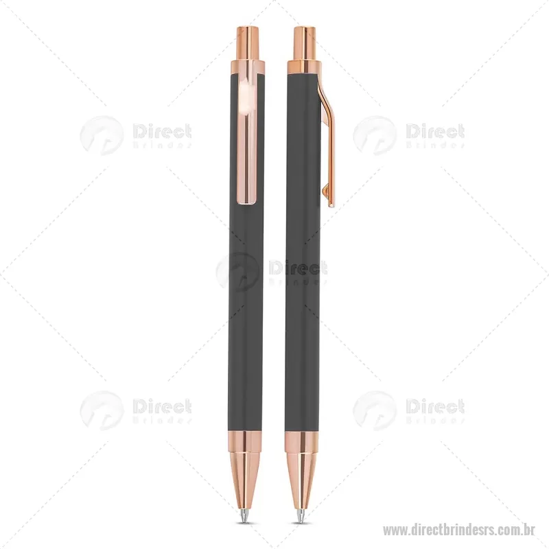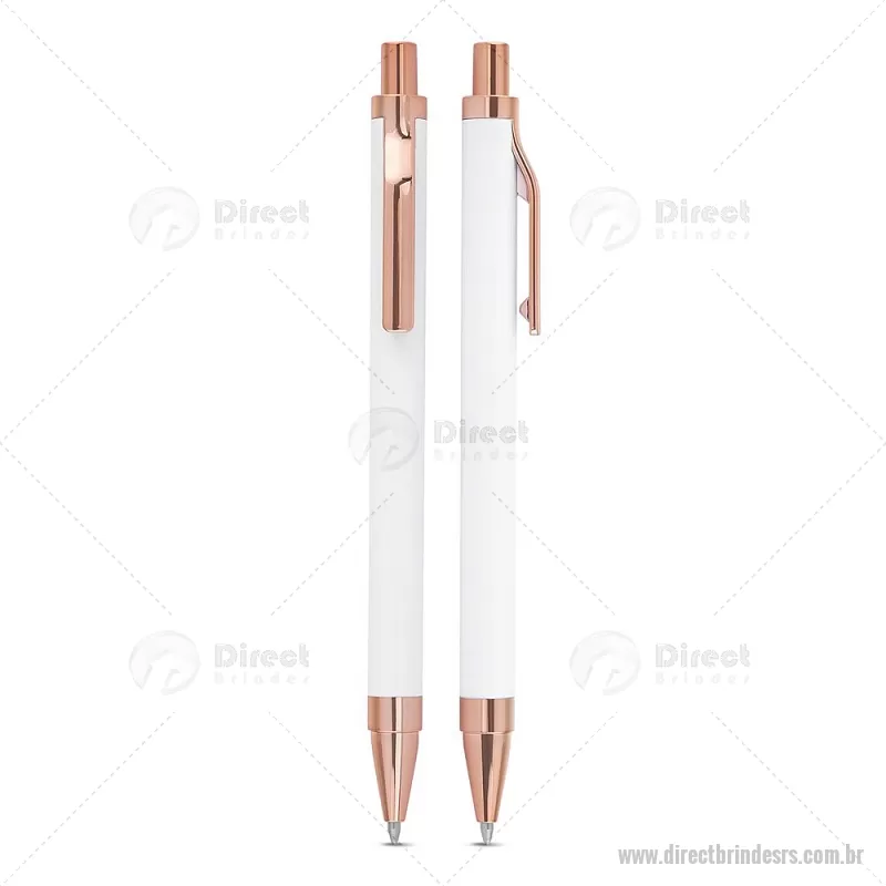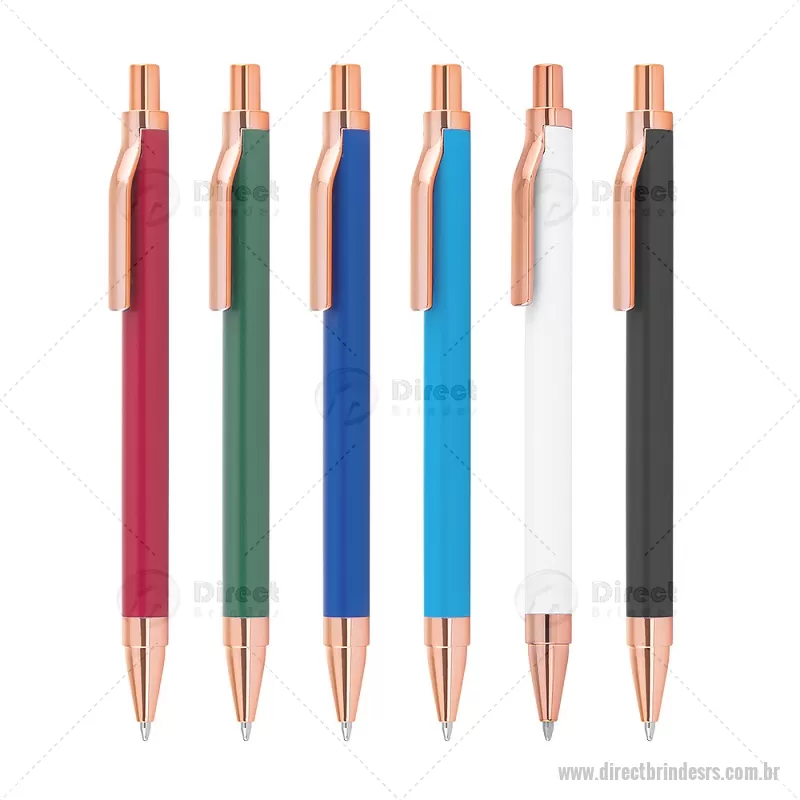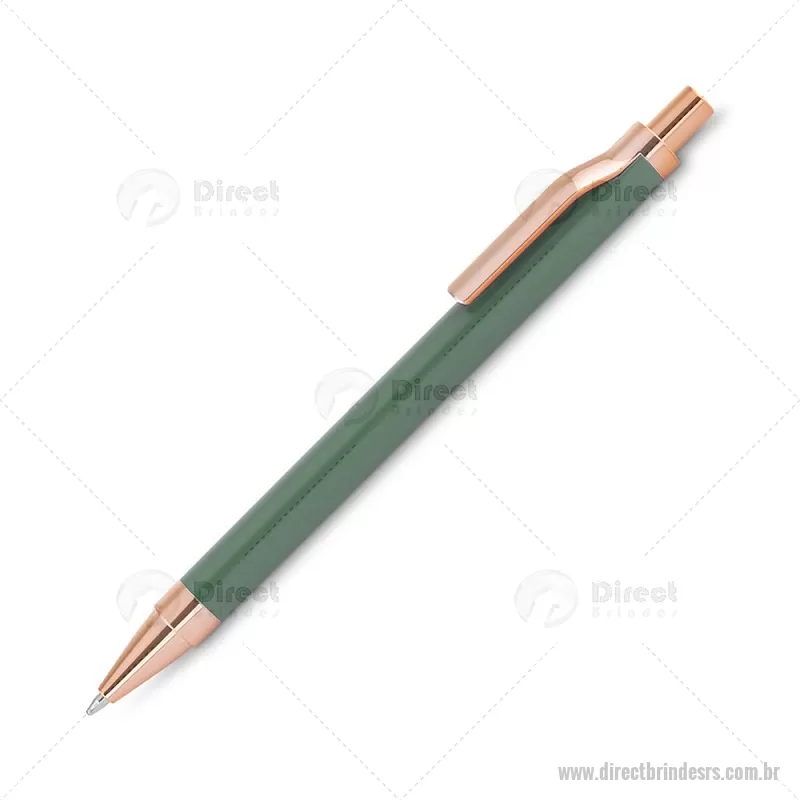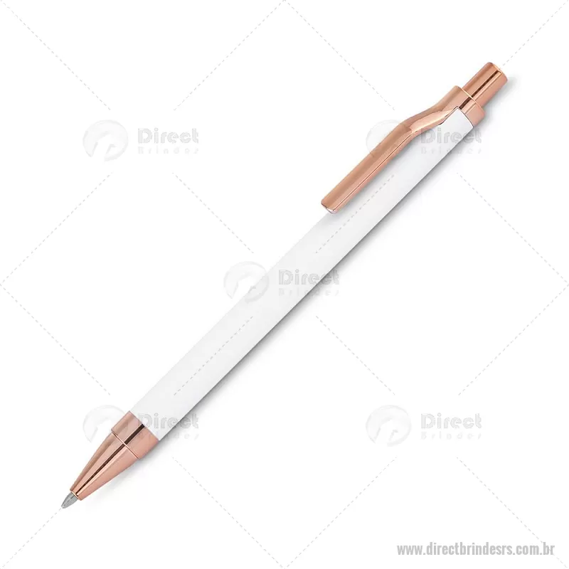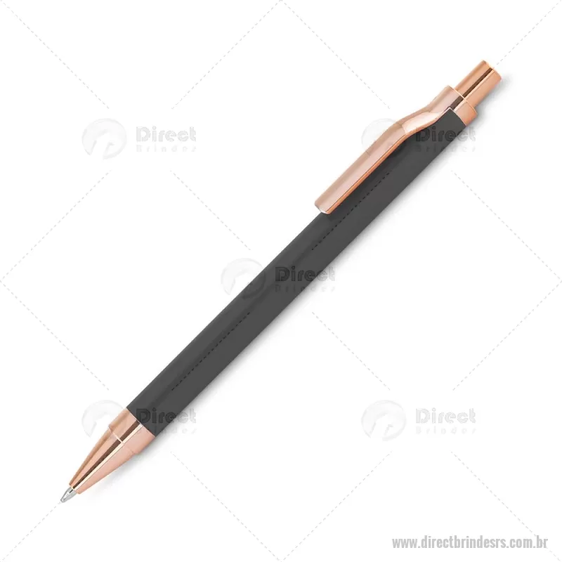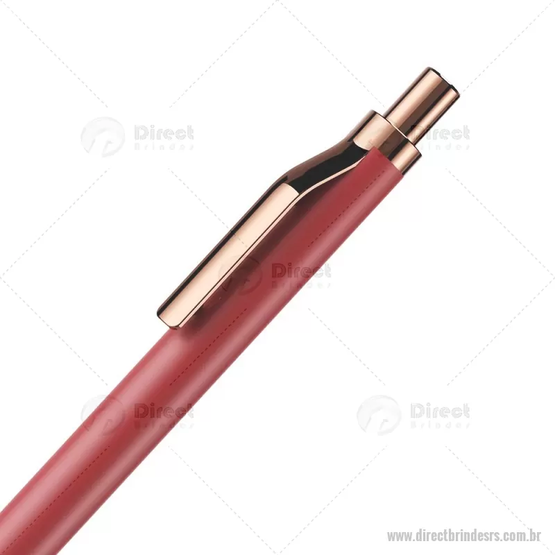 Caneta esferográfica com corpo em alumínio reciclado, acionador e clipe em acabamento rosé/bronze. Peso do Produto: 0,014kg Dimensão do Produto: 13,8xø1cm - - DRTRSCMT307