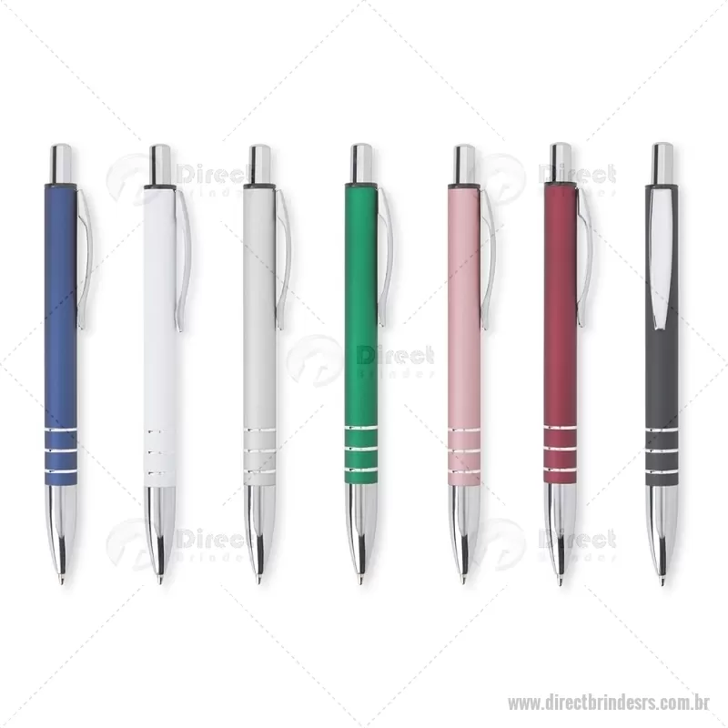 Caneta metálica com acabamento fosco, clipe metálico e ponteira plástica. Carga esferográfica azul 1.0mm e acionamento por clique. Largura : 1,6 cm x Comprimento : 14,4 cm Peso aproximado (g): 18 - - DRTRSCMT315