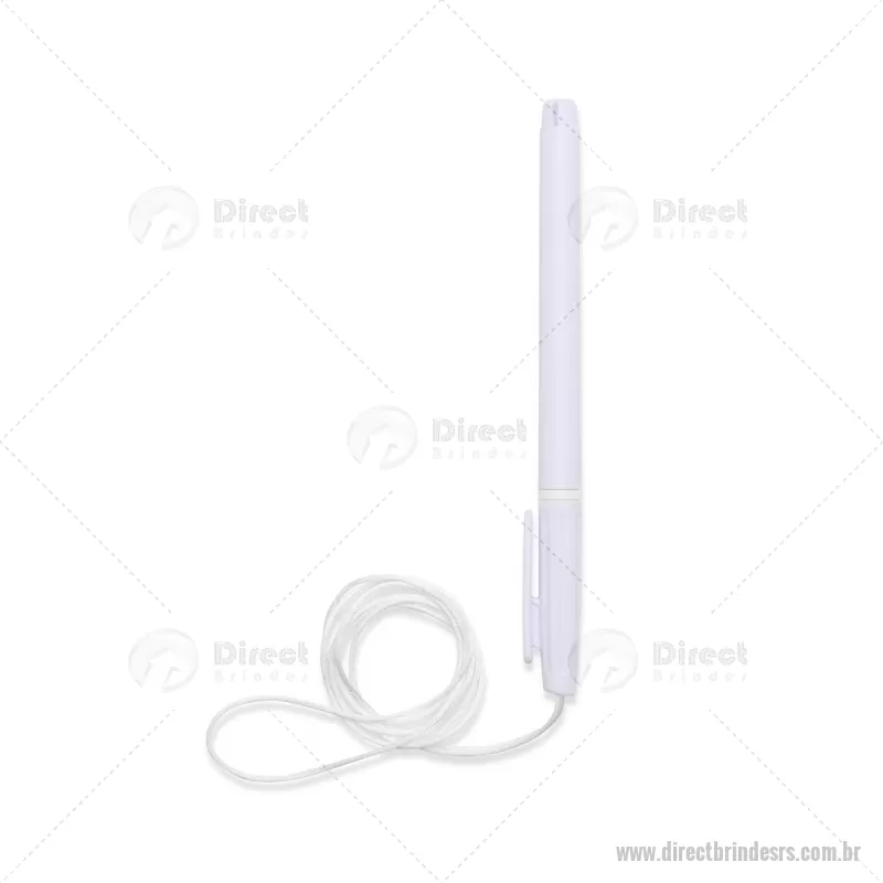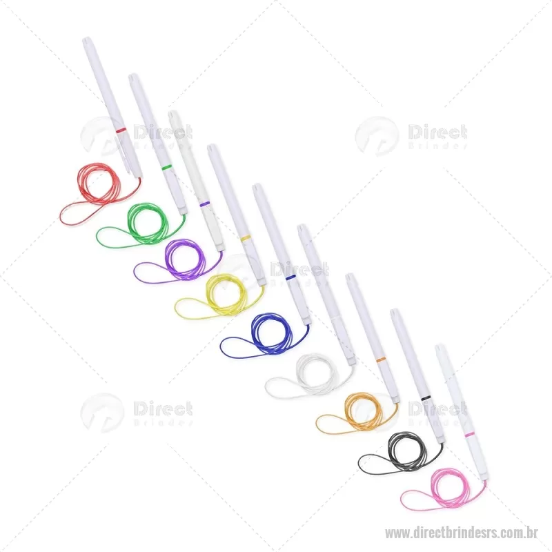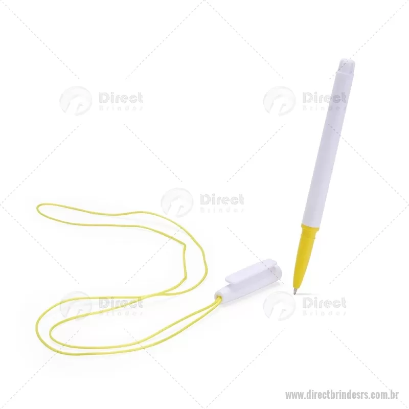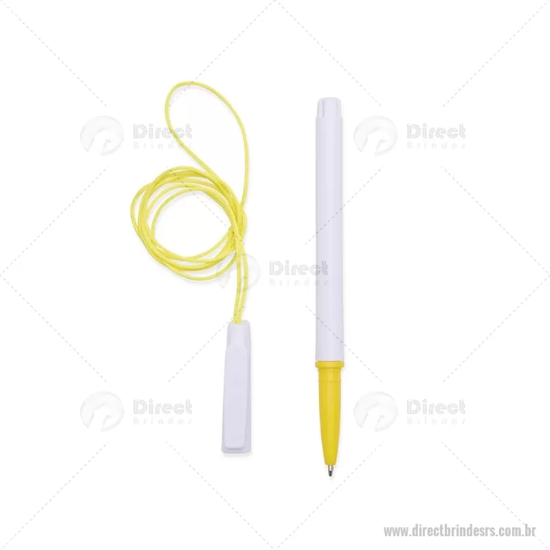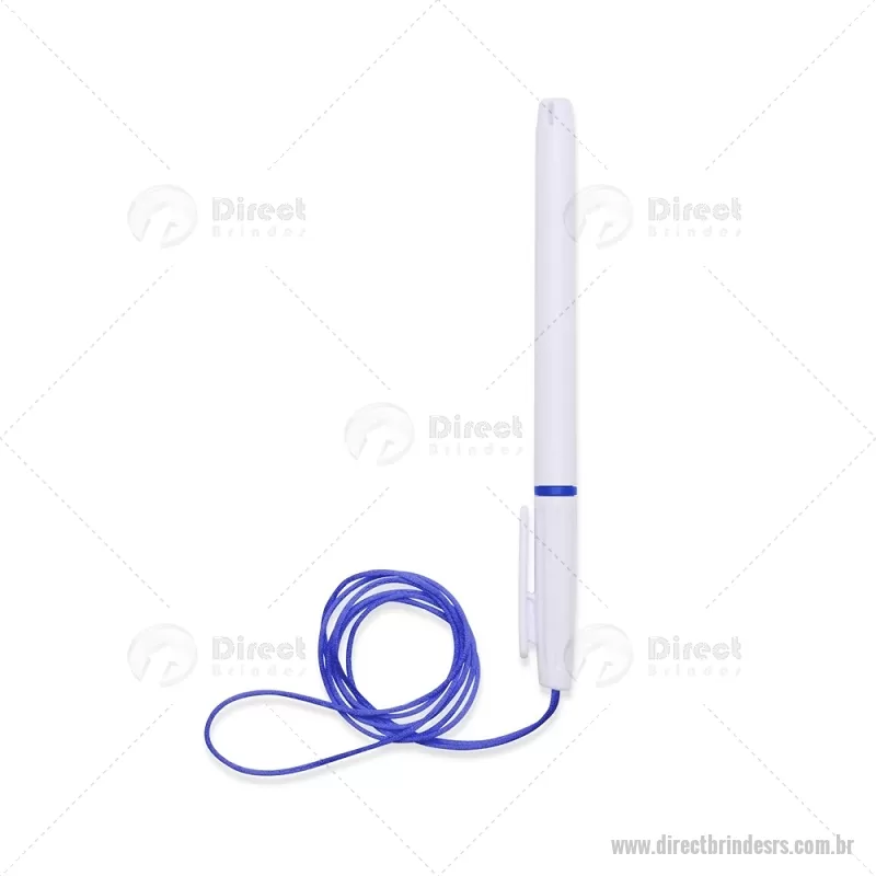 Caneta plástica com carga esferográfica azul 1,0 mm, acompanhada de cordão em nylon de 42 cm fixado na tampa. Leve e prática para uso diário. - - DRTRSCPL208