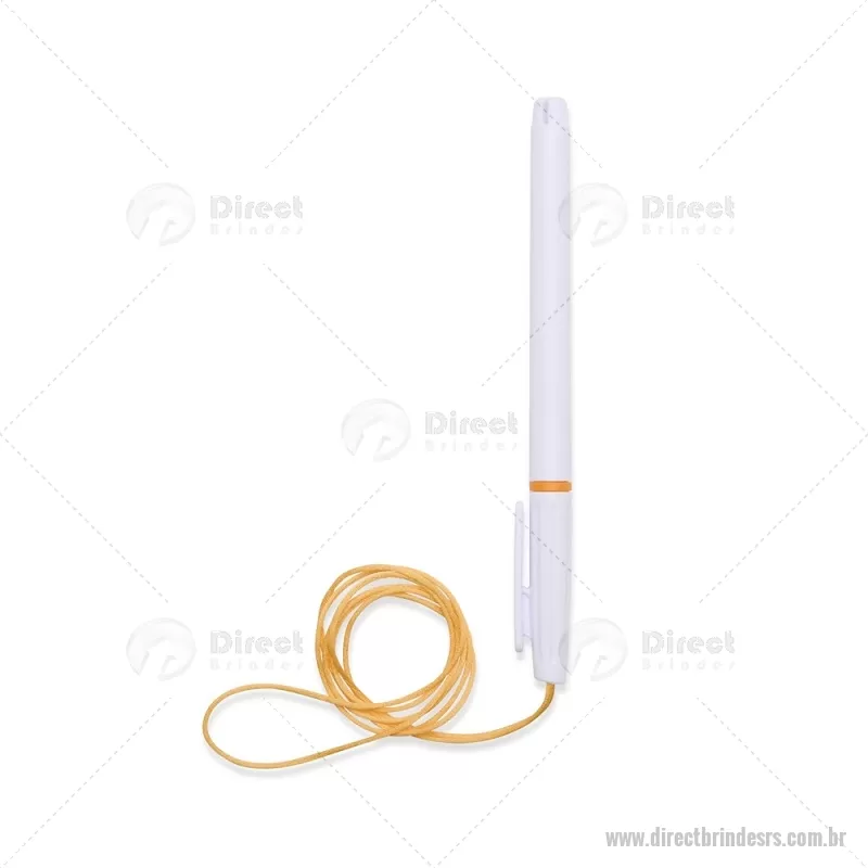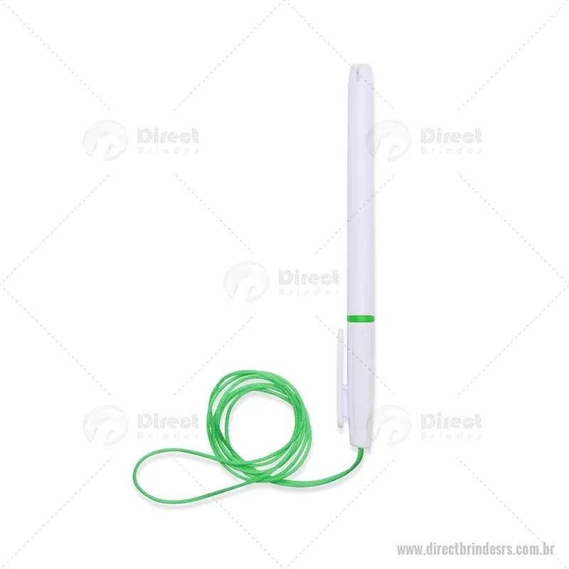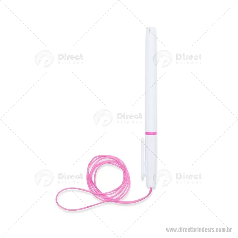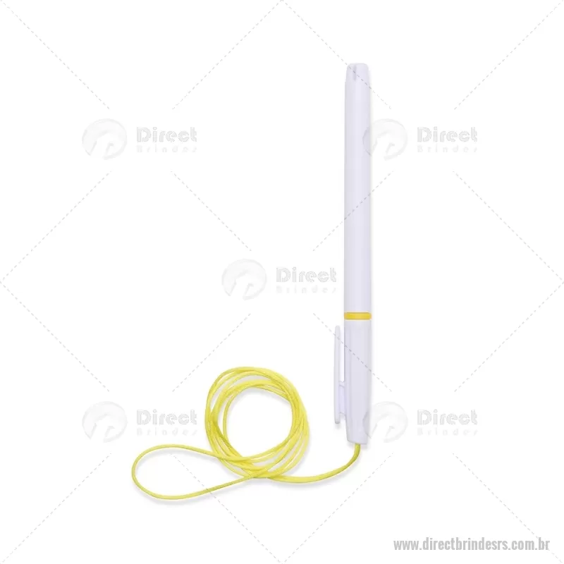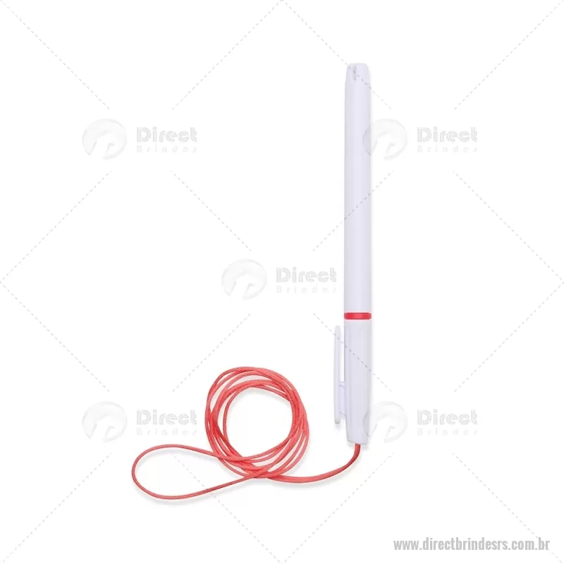 Caneta plástica com carga esferográfica azul 1,0 mm, acompanhada de cordão em nylon de 42 cm fixado na tampa. Leve e prática para uso diário. - - DRTRSCPL208