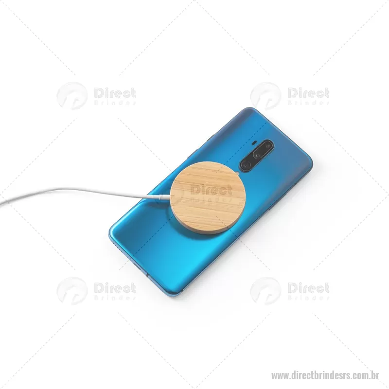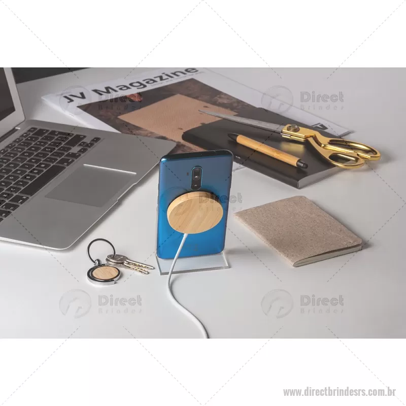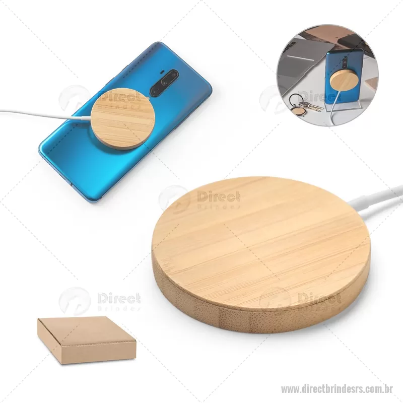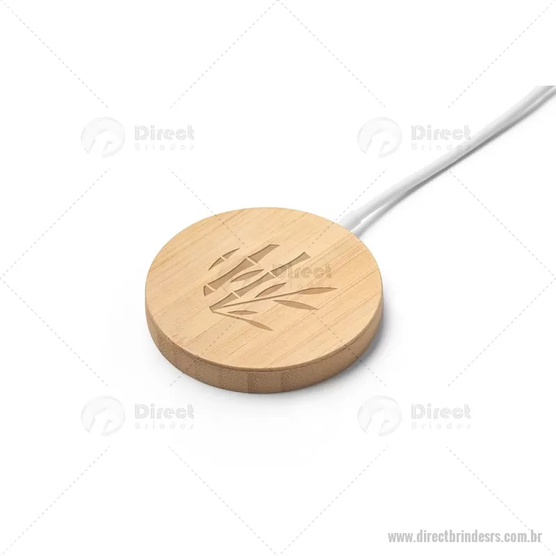 Carregador magnético por indução super-rápido em bambu 15 W Carregador magnético por indução (wireless) super-rápido em bambu. Potência de carregamento super-rápido de 15W. Incluso cabo de carregamento USB-C de 1 metro. Compatível com dispositivos móveis com tecnologia de carregamento sem fios. Fornecido em caixa presente de papel kraft reciclado. A cor e o resultado da impressão nos materiais naturais pode variar entre produtos. Medidas Produto: Ø59 x 8 mm Peso do Produto (g.): 35 - - DRTRSTEC533