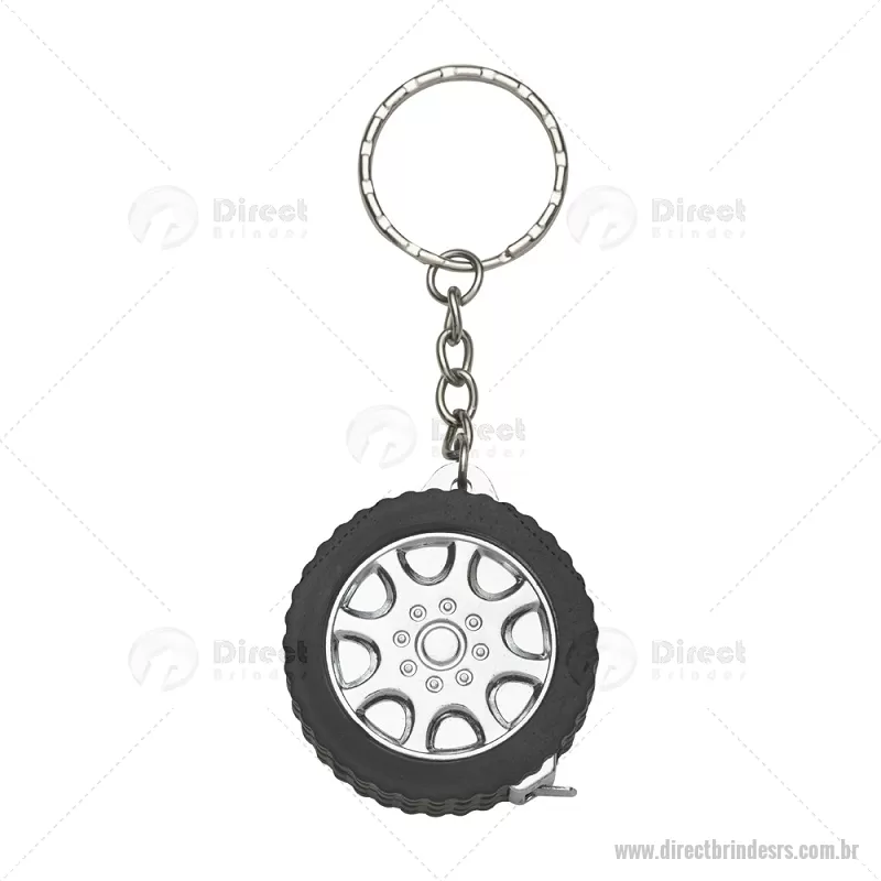 Chaveiro Plástico Trena 1 Metro Descrição: Chaveiro plástico em formato de pneu de carro e argola metálica. Possui uma trena com fita de alcance máximo de 1 metro, além de exibir suas medidas em pés e polegadas. Largura : 4,1 cm x Espessura : 1,6 cm x Comprimento : c/ argola: 10cm Tamanho total aproximado (CxL): 10,1 cm x 4,1 cm Peso aproximado (g): 24 - - DRTRSFTR020