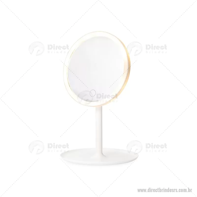 Espelho de Mesa Plástico com LED Descrição: Espelho de mesa com estrutura plástica de fácil montagem e rotação de até 90 graus. Possui iluminação em LED recarregável com três níveis de intensidade ajustáveis pelo botão de toque no espelho. Acompanha cabo USB-C. Altura : 30 cm x Largura : 18,5 cm Tamanho total aproximado (CxL): Diâmetro: 15 cm Peso aproximado (g): 273 - - DRTRSFEM117