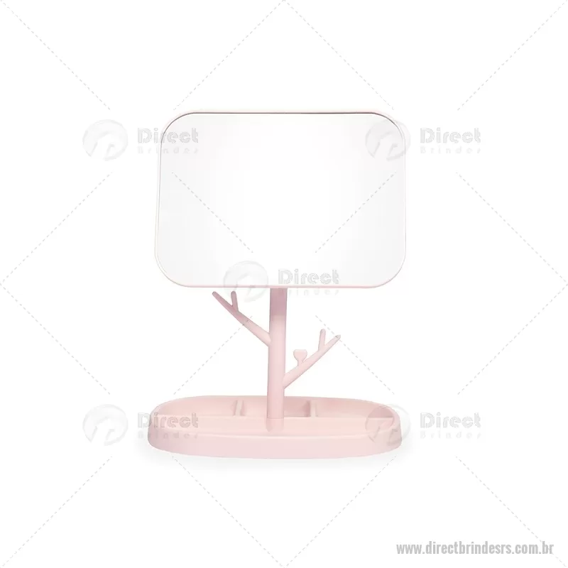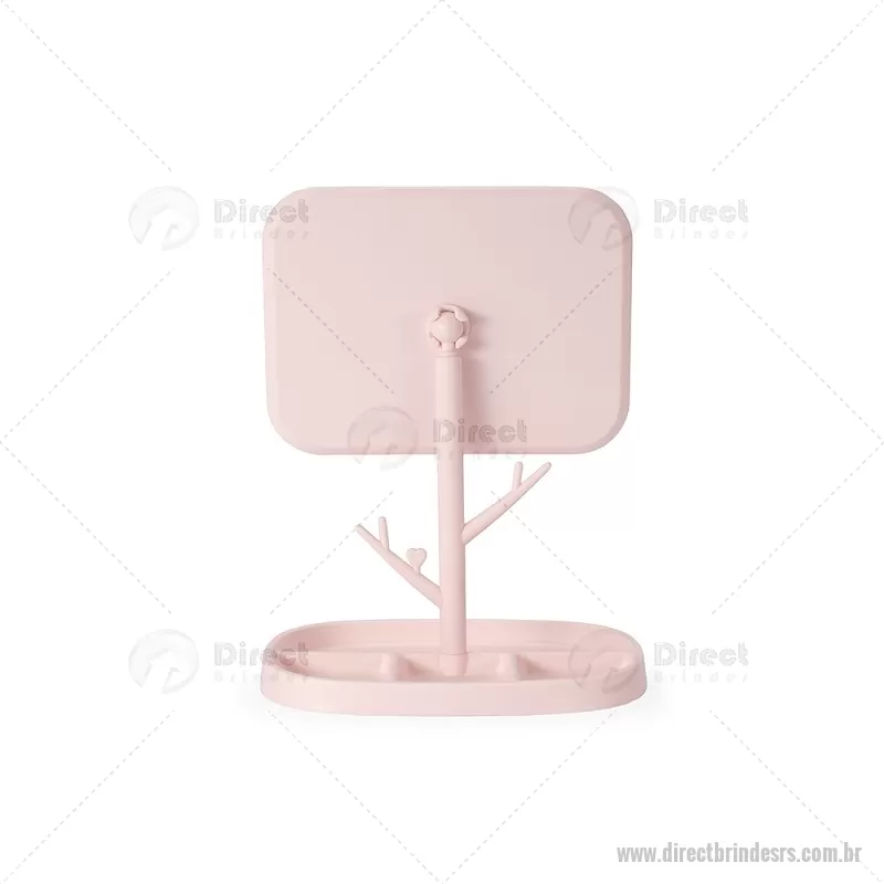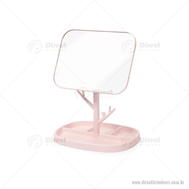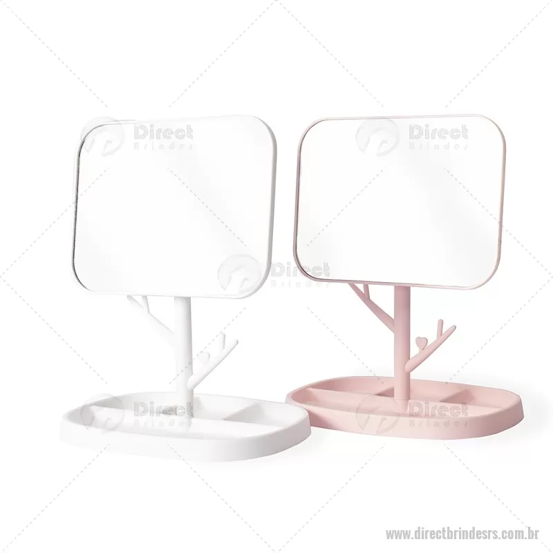 Espelho de mesa retangular e estrutura fácil de montar feita em plástico. Conta com pedestal giratório que permite ajustar o espelho em diferentes ângulos e posições. Além disso, possui ganchos laterais e quatro divisórias na base para organizar objetos. Altura : 30 cm x Largura : 15,5 cm x Comprimento : 20,5 cm Peso aproximado (g): 277 - - DRTRSFEM119