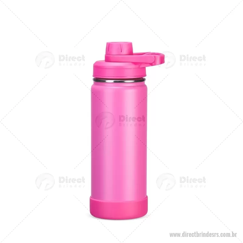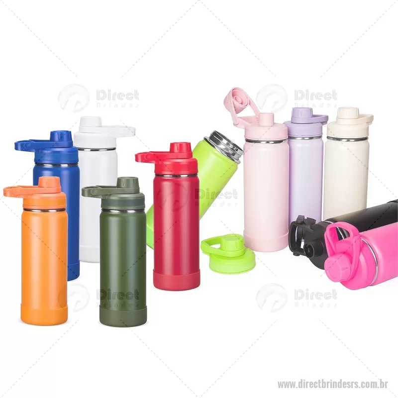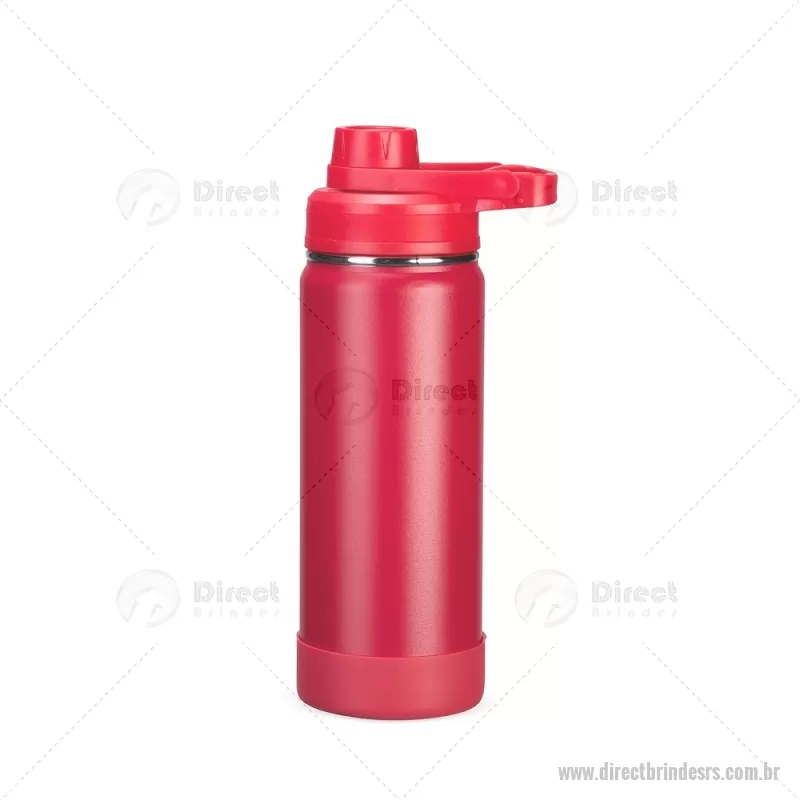 Garrafa Térmica 550ml inox com pintura eletrostática. Mantém a temperatura de líquidos por mais tempo graças à estrutura de parede dupla e ao isolamento a vácuo. Possui tampa plástica rosqueável com protetor de bocal e alça fixa. Acompanha protetor removível em silicone para a base. Altura : 22,5 cm x Largura : 7,4 cm x Circunferência : 23,3 cm Tamanho total aproximado (CxL): Diâmetro: 5,5 cm Peso aproximado (g): 290 - - DRTRSGAT172