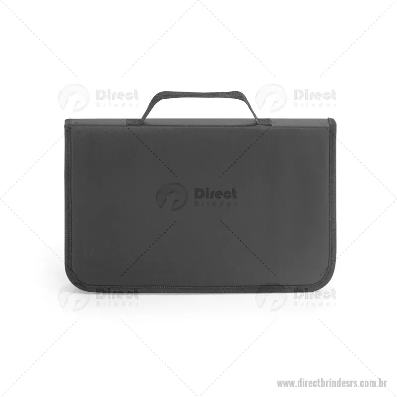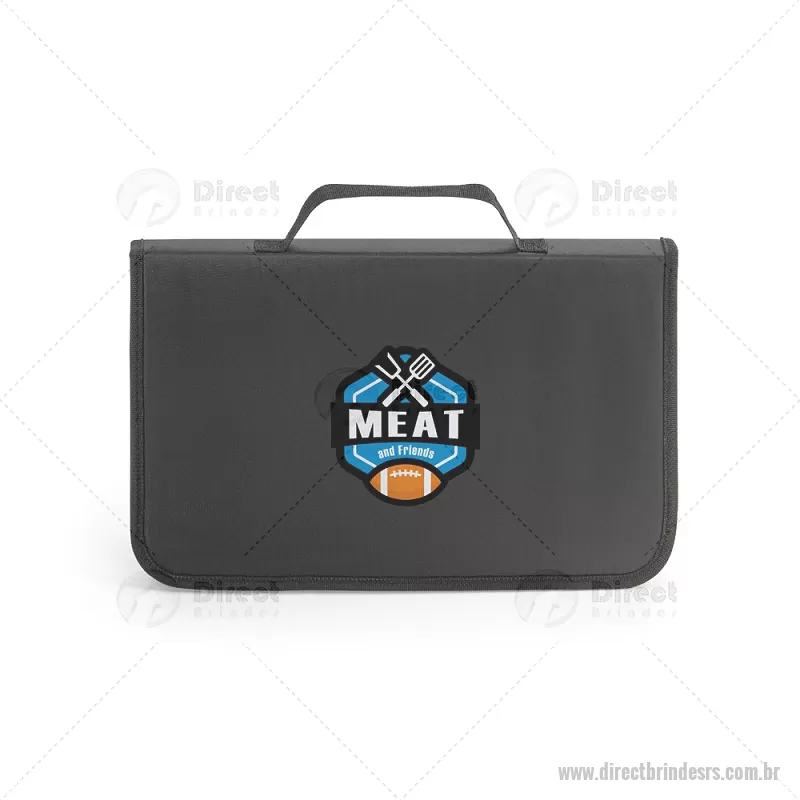 Kit churrasco em estojo de nylon 210D com tábua em PP e 5 utensílios em aço inox e PP: faca chefe, faca boning, faca pequena, garfo e afiador. Certificação EU Food Grade. Estojo: 350 x 230 x 40 mm | Tábua: 283 x 192 x 5 mm - - DRTRSKCH056