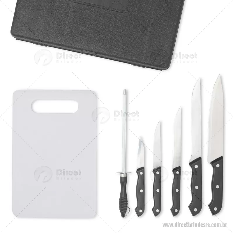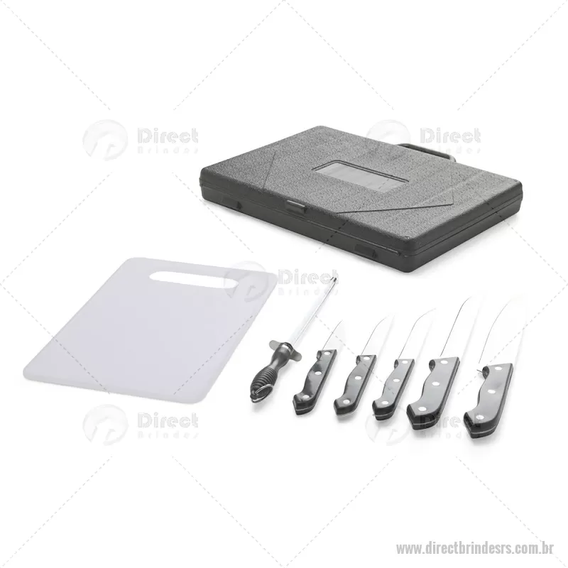 Kit Churrasco 7 Peças Um kit completo para ajudar na preparação de um churrasco inteiro e deixar o momento de confraternização ainda melhor. Este conjunto traz 7 itens, incluindo 1 tábua em plástico, 1 chaira em aço inox, e 5 facas em tamanhos diferentes do mesmo material: 1 faca de legumes (com 3 polegadas de lâmina), 1 faca de cozinha (com lâmina de 4 polegadas), 1 faca de desossar (com lâmina de 5 polegadas), 1 faca trinchante (com lâmina de 7 polegadas) e 1 faca peixeira (com lâmina de 8 polegadas). Tudo isso acompanhada por uma elegante maleta para facilitar a organização e o transporte do kit. Altura : 27cm x Comprimento : 36 cm Peso aproximado (g): 929 - - DRTRSKCH093
