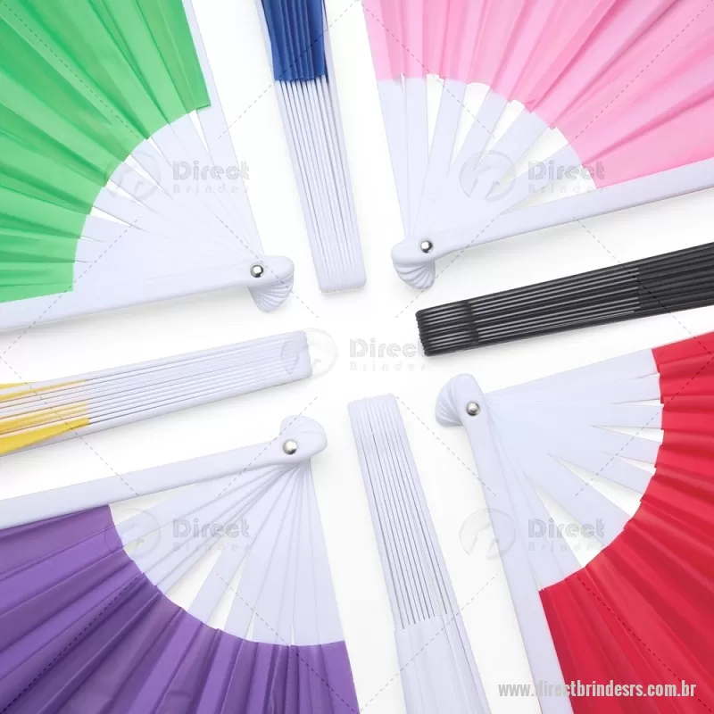 Leque confeccionado com estrutura em plástico resistente e revestimento em tecido tafetá. Leve, prático e ideal para proporcionar frescor em dias quentes, sendo fácil de transportar e usar no dia a dia. - - DRTRSFEM122