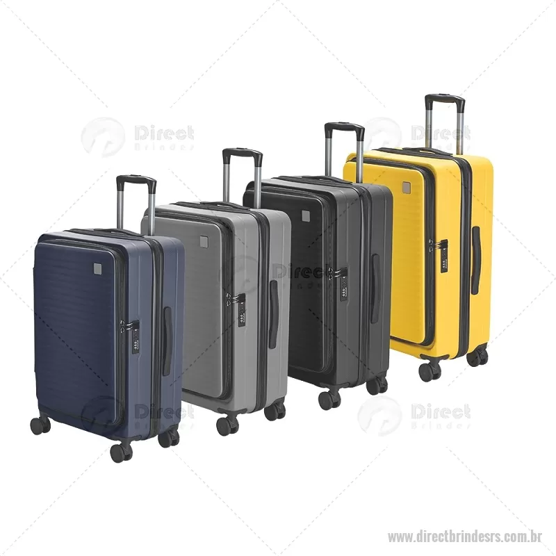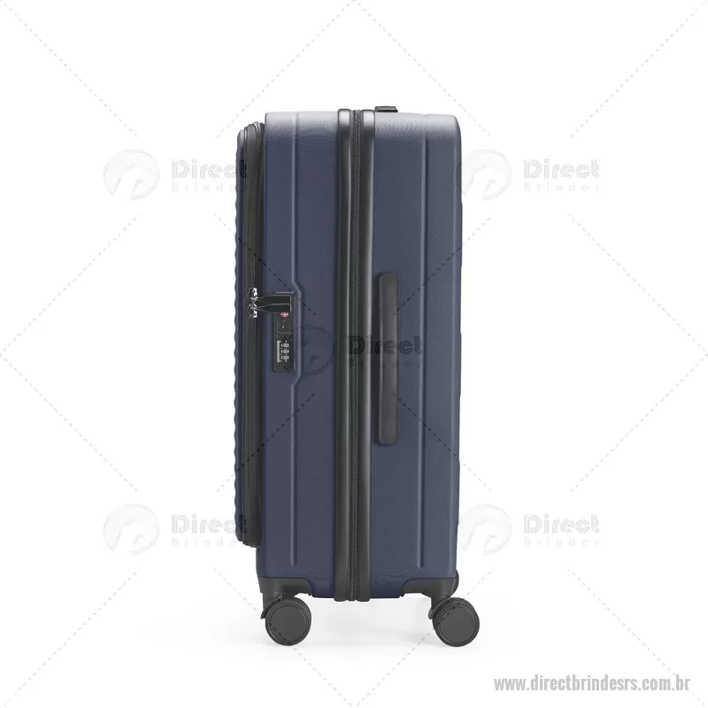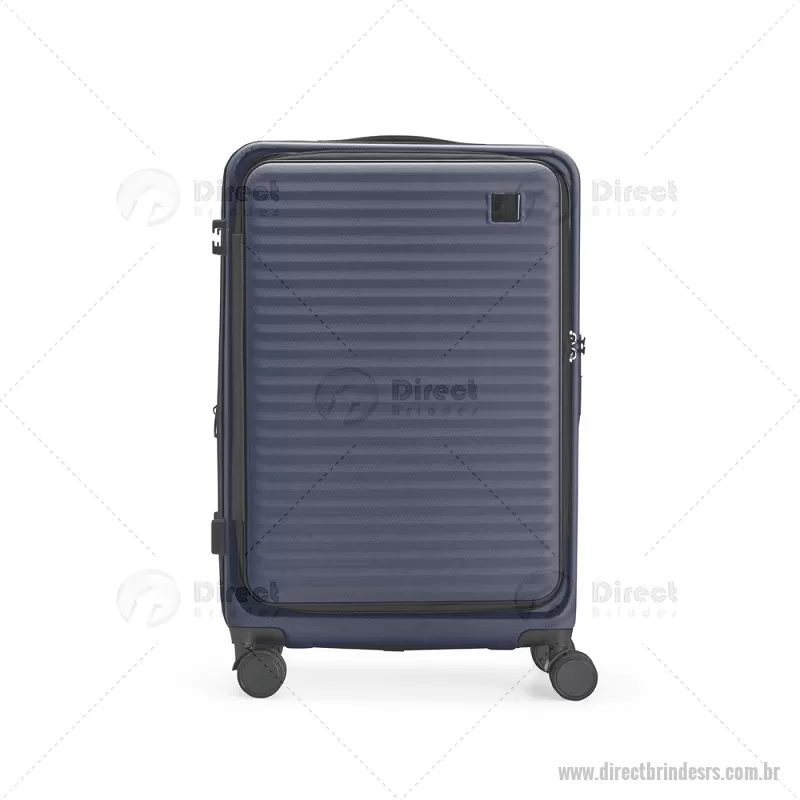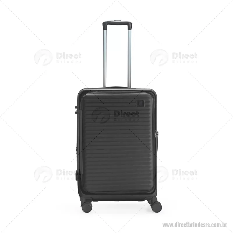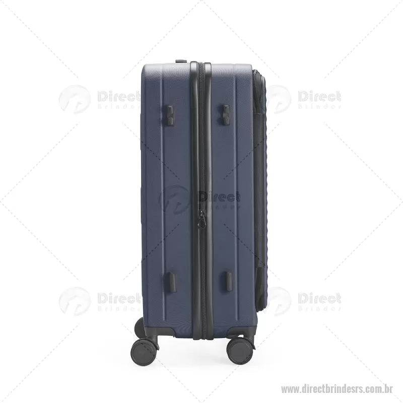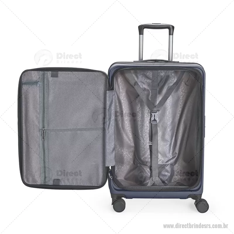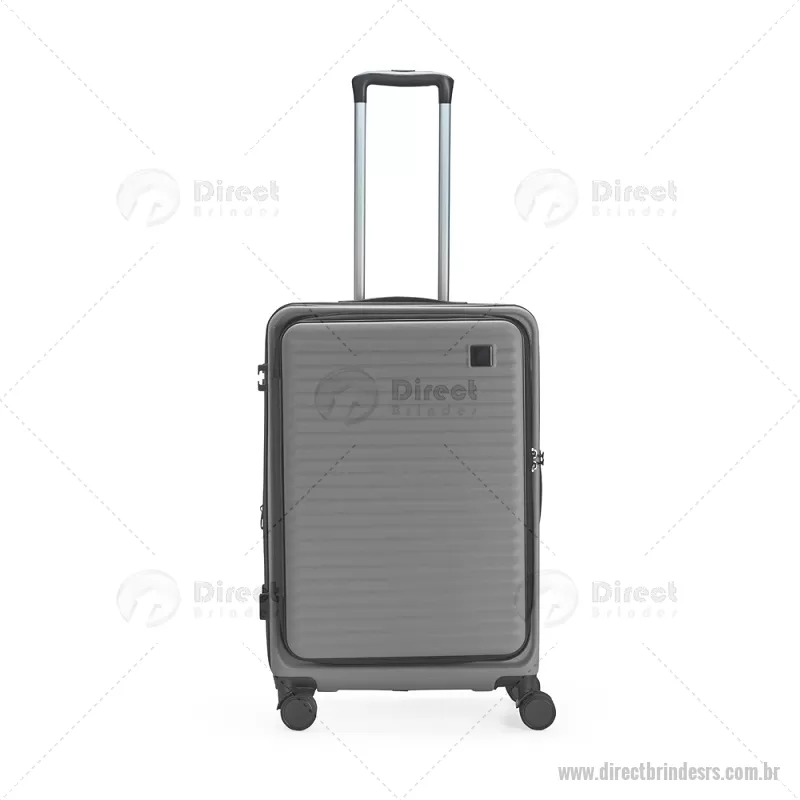 Mala de viagem com capacidade de 66 litros, fabricada em plástico ABS resistente e equipada com cadeado TSA embutido para maior segurança. Possui abertura frontal com compartimentos internos organizadores, zíperes e cinta compressora, além de zíper expansível que amplia o espaço interno. Conta com puxador retrátil de três níveis, duas alças de mão, apoios e ganchos laterais, além de rodinhas com giro 360° para deslocamento fácil. Acompanha plaquinha metálica grafite para personalização. - - DRTRSMC250