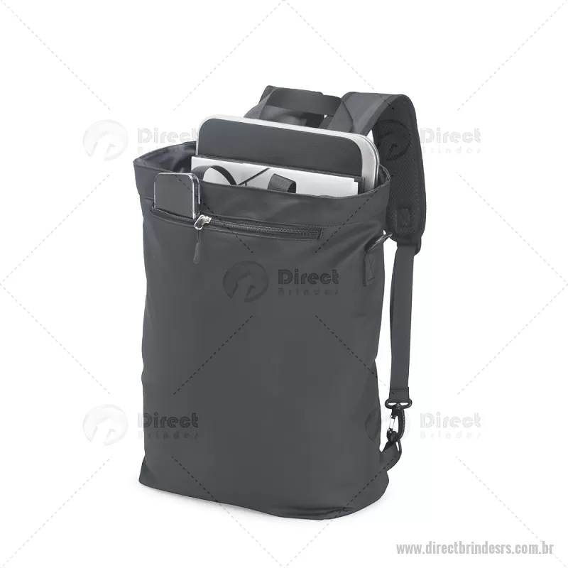 Mochila em PU resistente à água com capacidade de 26 litros e design versátil, permitindo uso em três formatos. Possui três compartimentos: frontal, traseiro multifuncional (que acomoda as alças ou funciona como bolso extra) e compartimento principal amplo com bolso interno em zíper. Conta com alças de mão, alças para uso como mochila e alça transversal removível, unindo praticidade, organização e estilo para o dia a dia ou viagens. - - DRTRSMC252