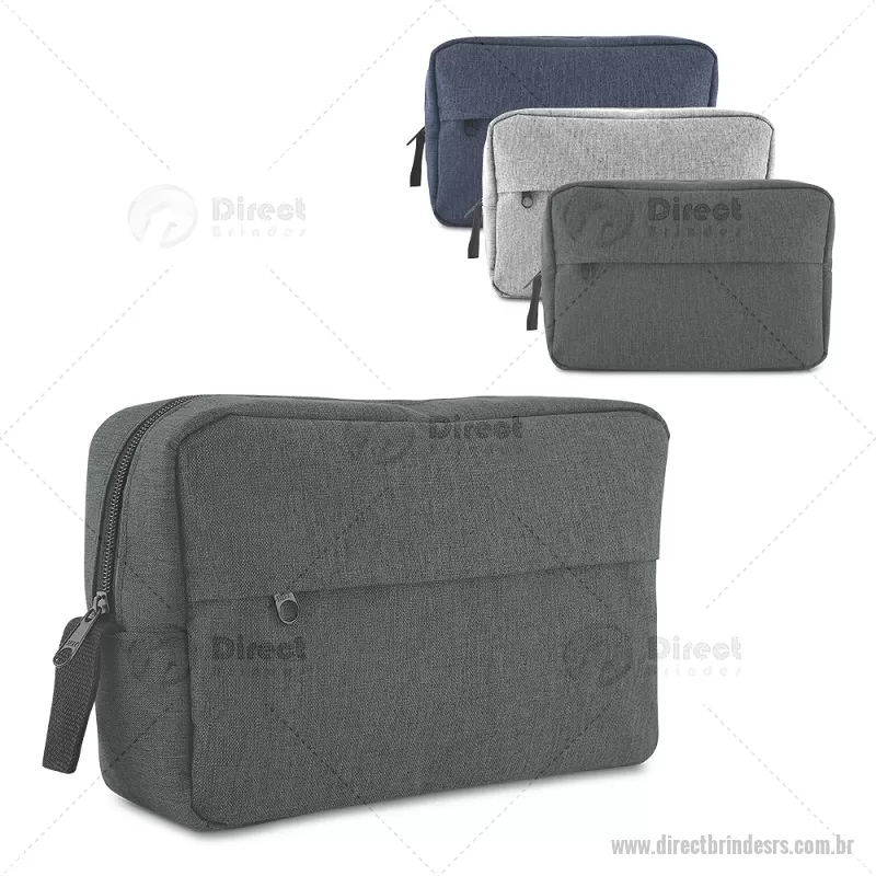 Nécessaire em poliéster 300D, equipada com alça para transporte e bolso frontal com fechamento em zíper. Compacta e prática para organizar pequenos itens do dia a dia. - - DRTRSNC145