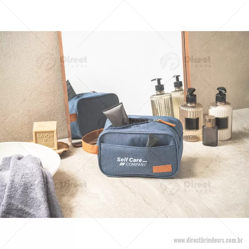 Nécessaire para cosméticos em 600D de alta densidade e pega em PU Bolsa de cosméticos em 600D de alta densidade e pega em PU. Contém bolso frontal com zíper e placa em PU. Medidas: 220 x 130 x 130 mm Peso do Produto (g.): 126 - - DRTRSNC142