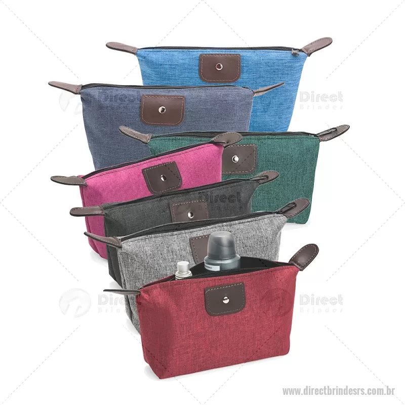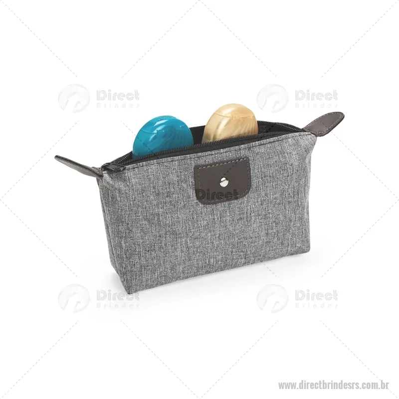 Nécessaire compacto em poliéster com mescla de PVC resistente à água. Possui fechamento em zíper e acabamento com detalhes em bidim e metal, oferecendo praticidade e um visual moderno para organizar pequenos itens do dia a dia. - - DRTRSNC150