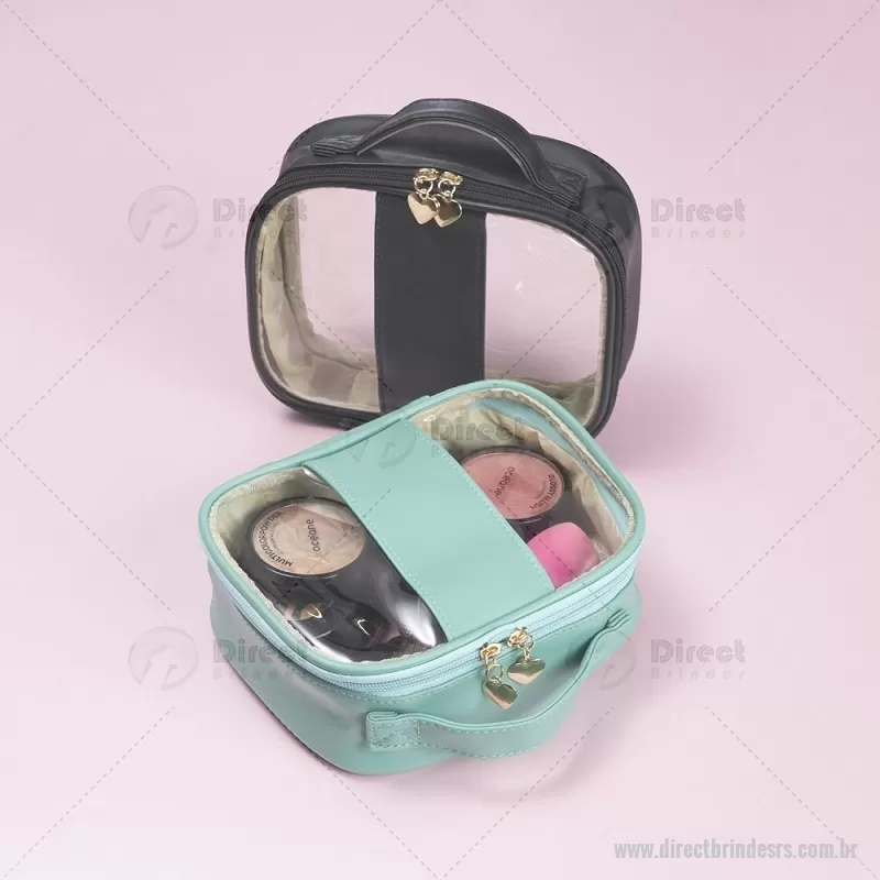 Necessaire impermeável de PVC e PU tamanho P, parte interna com revestimento em tecido, possui alça superior para as mãos, e detalhe dourado em formato de coração no zíper. Medidas nécessaire: 17 cm x 20,5 cm x 7,2 cm Peso aproximado (g): 134 - - DRTRSNC100