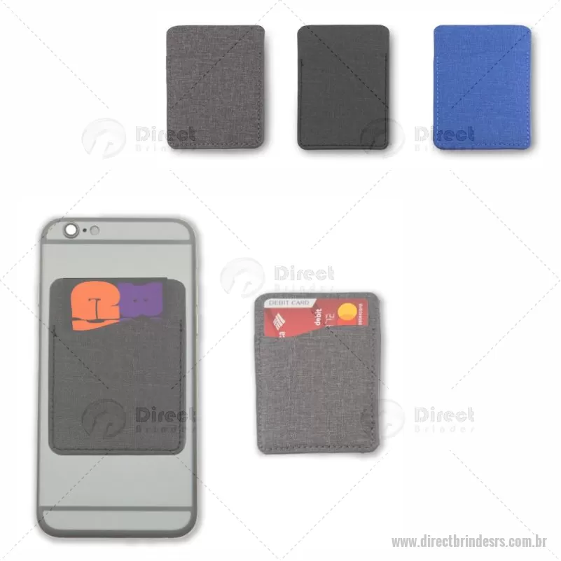 Porta cartão para celular em poliéster com adesivo. Brinde ideal para ações promocionais, feiras e eventos corporativos. - - DRTRSPCA032