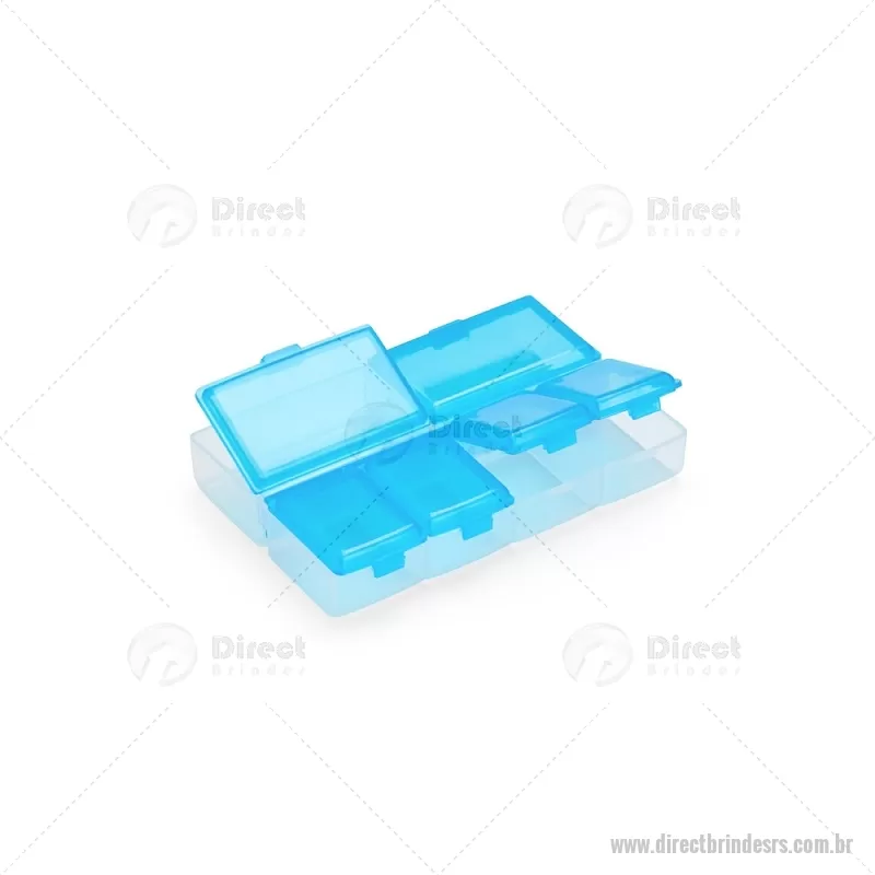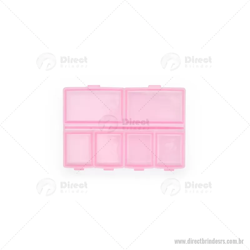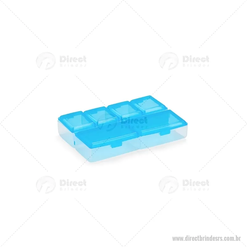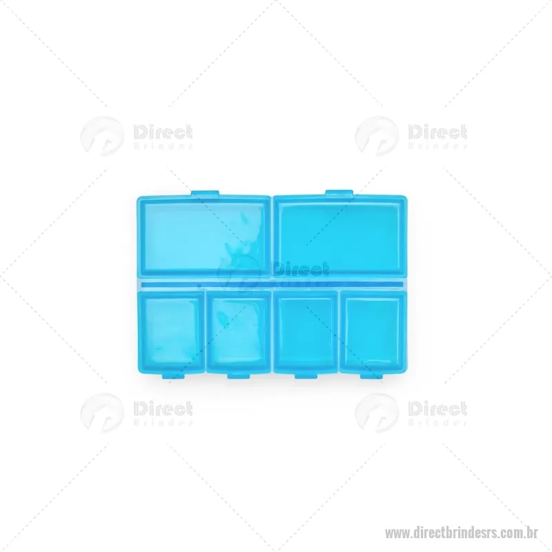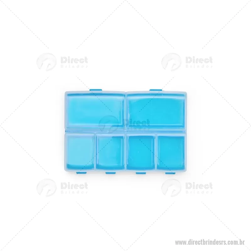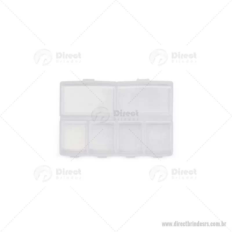 Porta-Comprimidos Plástico Descrição: Porta-comprimidos em plástico com seis compartimentos, dois maiores e outros quatro menores, oferecendo mais possibilidades de organização. Largura : 6,4 cm x Espessura : 1,9 cm x Comprimento : 9,5 cm Peso aproximado (g): 23 - - DRTRSPCP015