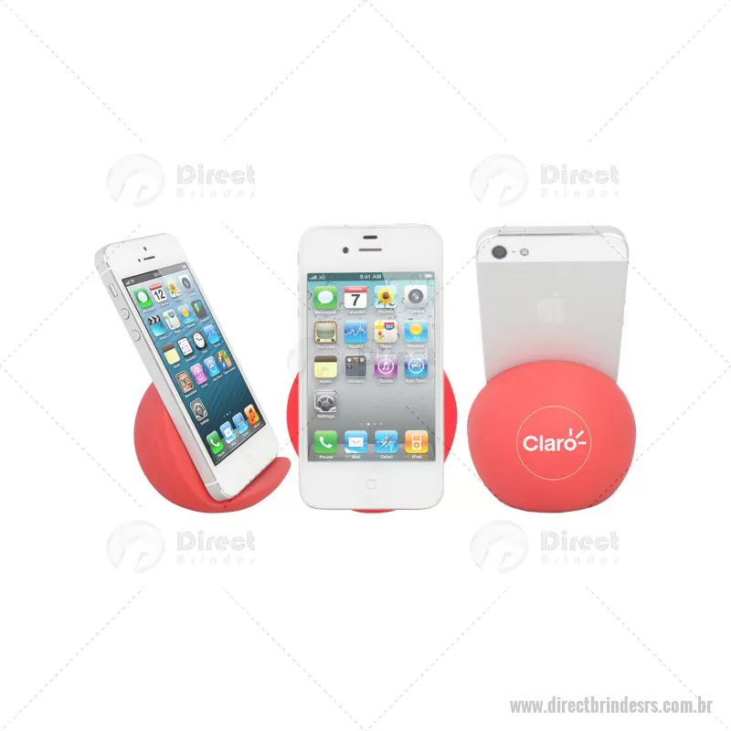 Porta celular / Apoio para smartphone de mesa Personalizado. Feito em vinil oca e disponível em várias cores. Material: Vinil - Especificação: Vinil (Policloreto de vinil) Disponível nas cores: vermelho, azul, azul escuro, azul claro, verde, verde escuro, verde claro, amarelo, laranja, preto, branco. Informação: Pantones específicos a partir de 1000 peças. Tipo de gravação: Tampografia Area de gravação: 40mm Ø Medida Produto: 65mm A x 75mm L x 70mm Peso: 45g Quantidade Mínima: 100 un - - DRTRSTEC065