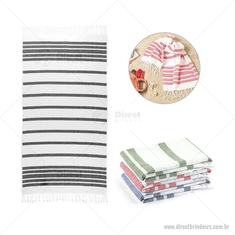 Toalha de praia em algodão (70% reciclado) e poliéster (30% reciclado) (180 g/m²) Toalha de praia em algodão 70% reciclado e poliéster 30% reciclado (180 g/m²), com um design minimalista e elegante para os seus dias de praia. Medidas : 900 x 1700 mm Peso do Produto (g.): 315 - - DRTRSTO026